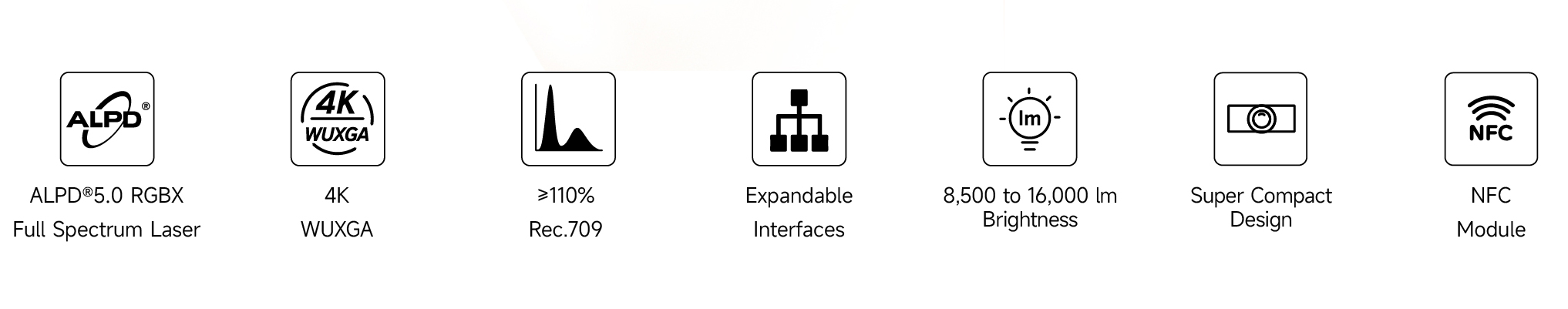 Utilizing all-new RGBX laser engine, the S Smart features wide color gamut with more than 11% red light ratio at 4K/WUXGA resolution.