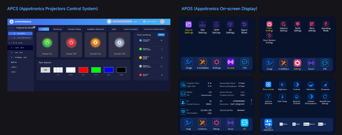 The Appotronics operating system and control software work seamlessly together to provide smooth operation and remote management of the equipment for maximum efficiency.